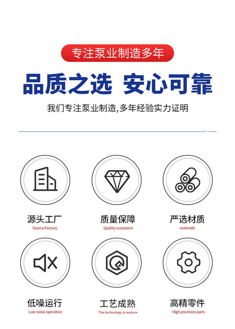 南方SS系列為水務(wù)行業(yè)研發(fā)的不銹鋼立式多級離心泵,產(chǎn)品經(jīng)CFD性能優(yōu)化、減壓降噪分析和全新的工業(yè)設(shè)計,能效指標(biāo)達到行業(yè)標(biāo)桿水平,振動,噪音符合國家A級標(biāo)準(zhǔn)。具有節(jié)能、低噪、環(huán)保及機構(gòu)緊湊、外觀美觀、重量輕、使用維護方便、可靠性高等特點。泵出廠時未配置壓力或溫度傳感器等附件,若需要實現(xiàn)自動控制功能,用戶須自行配置。