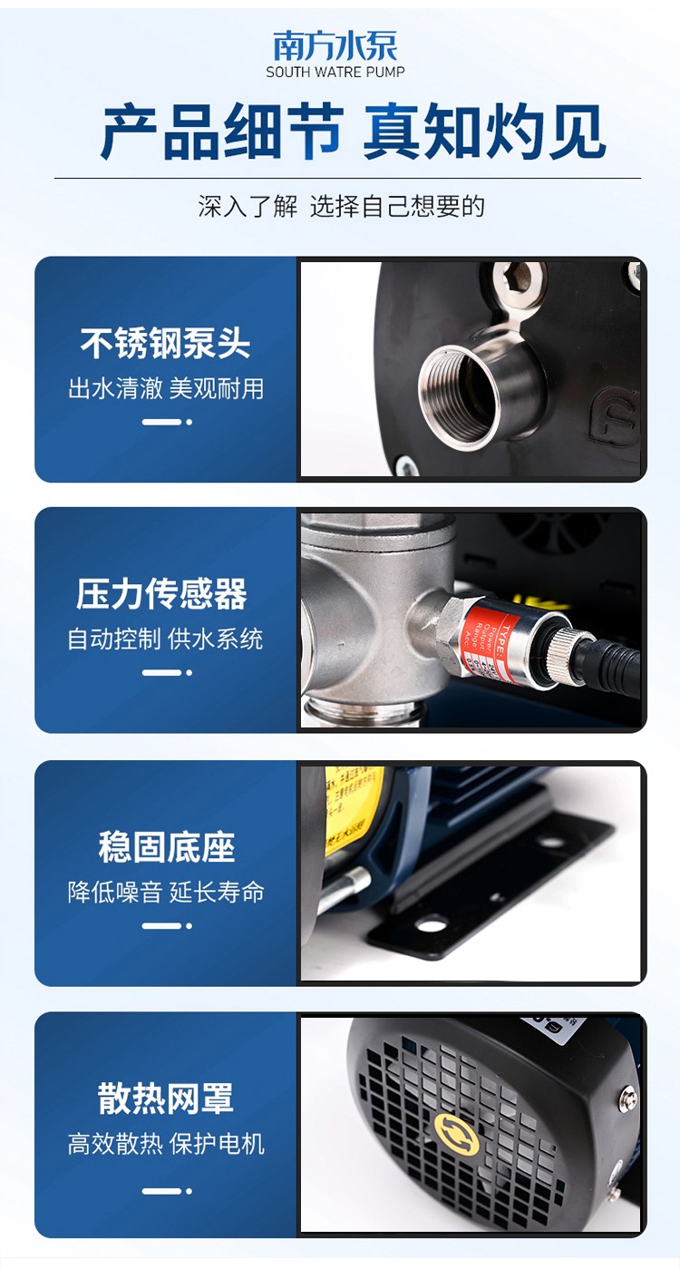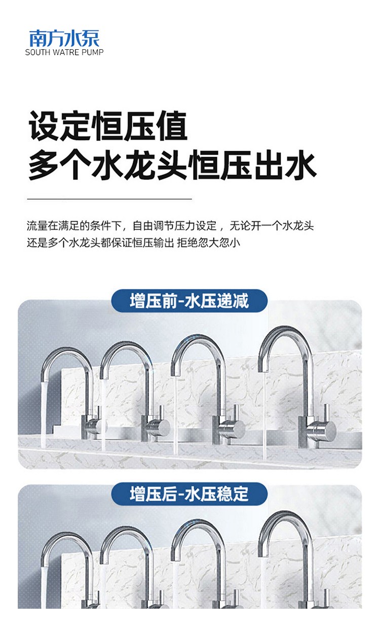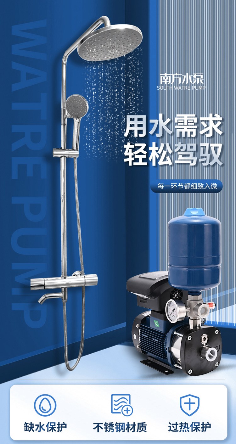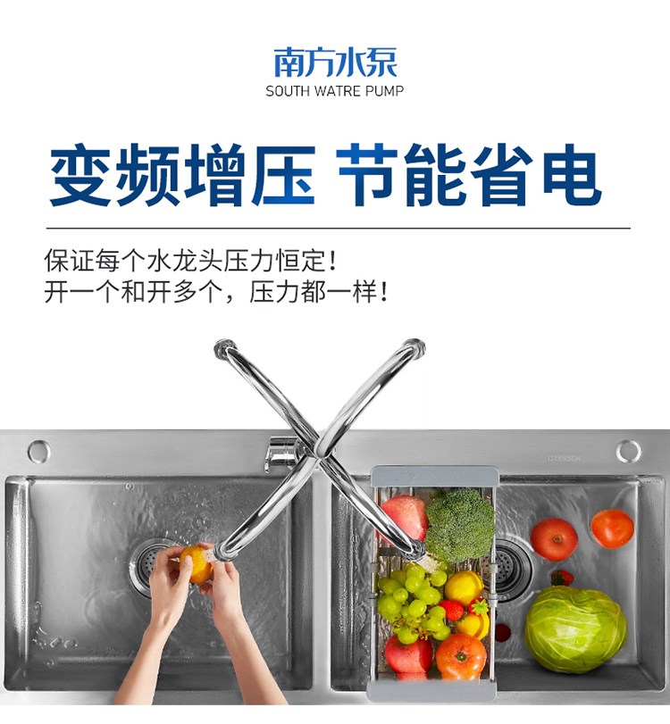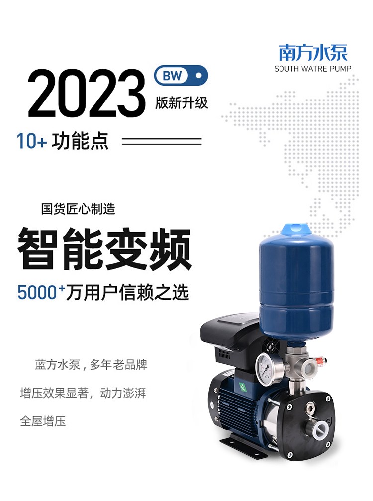 南方CHME系列臥式智能恒壓變頻泵采用了變頻調速及自動化控制相結合的技術,配合高效節(jié)能的CHM非自吸輕型臥式多級離心泵。整機主要由CHM泵、控制器、傳感器、壓力罐、五通止回閥及軸向抗震壓力表等組成。具有性能穩(wěn)定、高效節(jié)能、全自動智能控制、低噪音、耐腐蝕、結構緊湊、外形美觀、體積小、重量輕等特點。