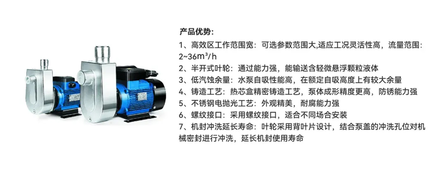 新產(chǎn)品NZXF小型不銹鋼自吸泵共推出三相12個(gè)型號(hào),單相9個(gè)型號(hào),可滿足304/316L材質(zhì)需求,電機(jī)可滿足常規(guī)及防爆需求配置,常用于農(nóng)村MBR膜污水處理、畜牧養(yǎng)殖行業(yè)加藥和消毒等場(chǎng)景。